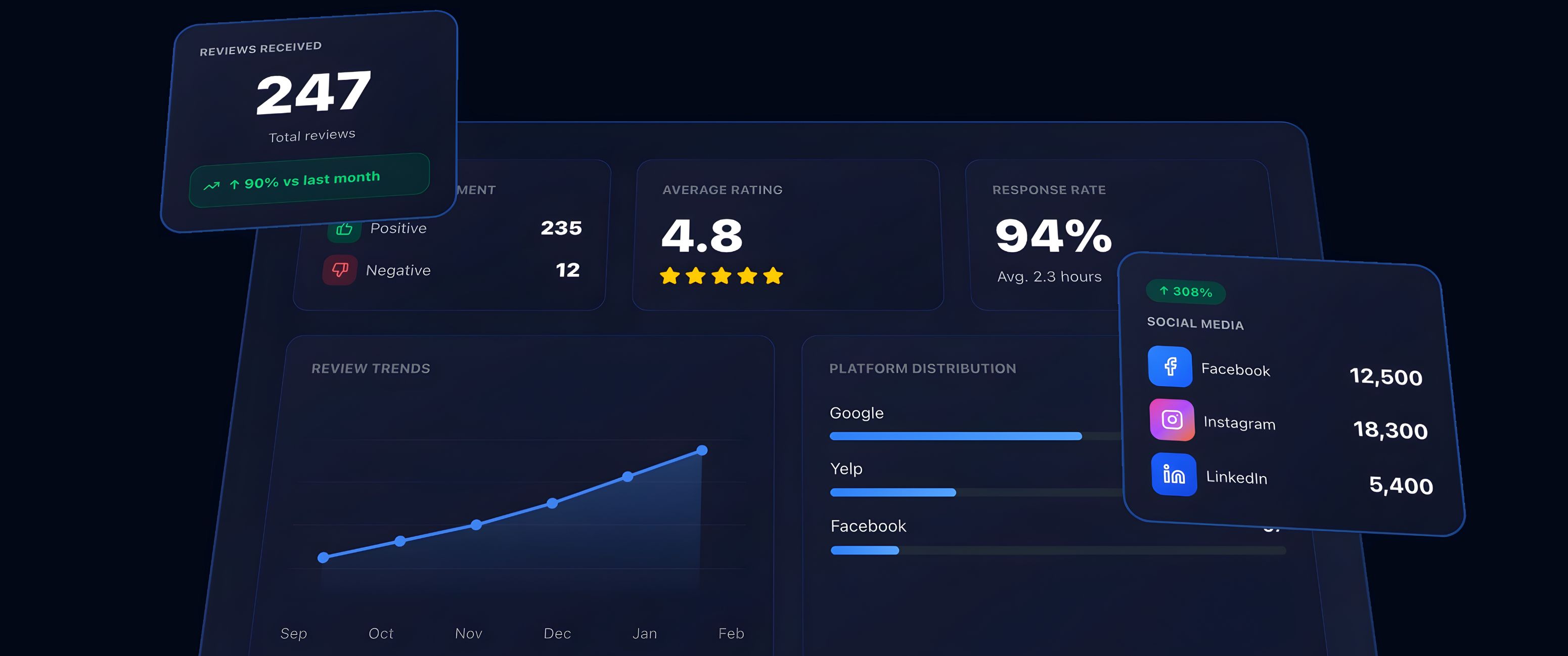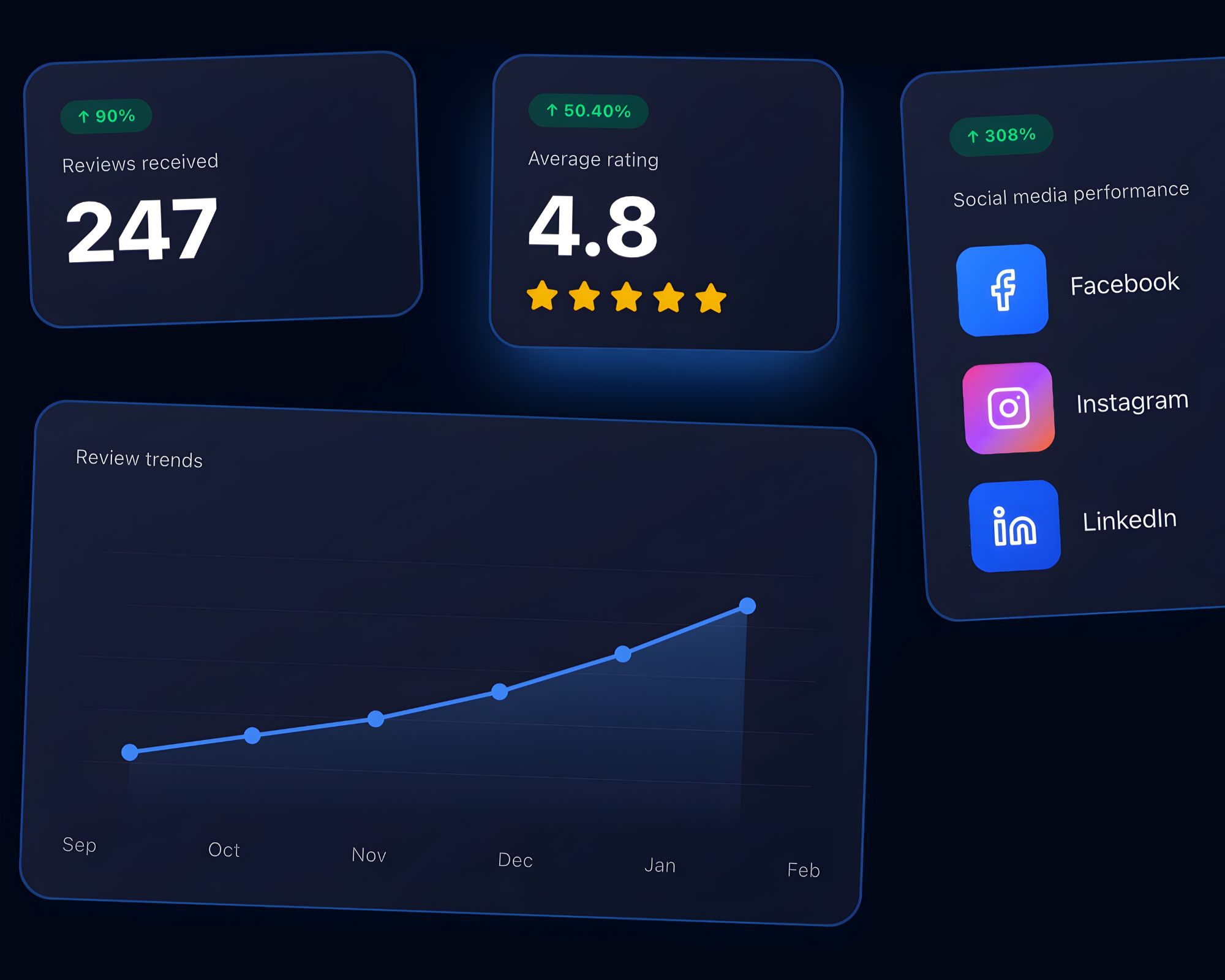 Track review growth and overall performance from one clear dashboard so you always know what’s working.